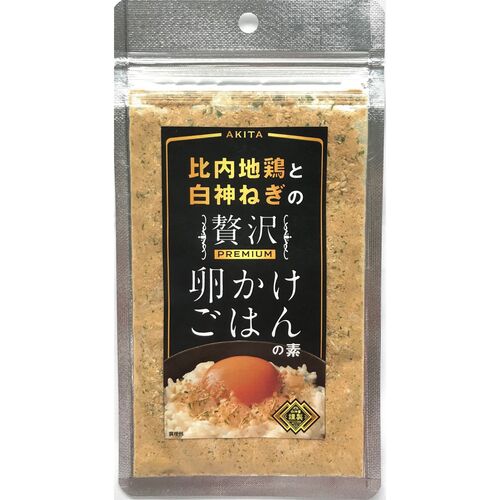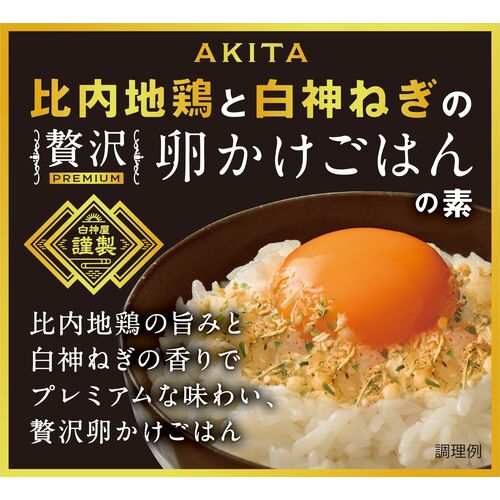 比内地鶏の旨みと、白神山地の恵をいっぱいに受け育てられた白神ねぎの香りをギュッと濃縮した、新しい「ふりかけタイプ」の素です。温かいご飯に生卵を割り入れ、本品をふりかけ味付けしてください。今までにない贅沢な味わいの卵かけごはんが堪能できます。