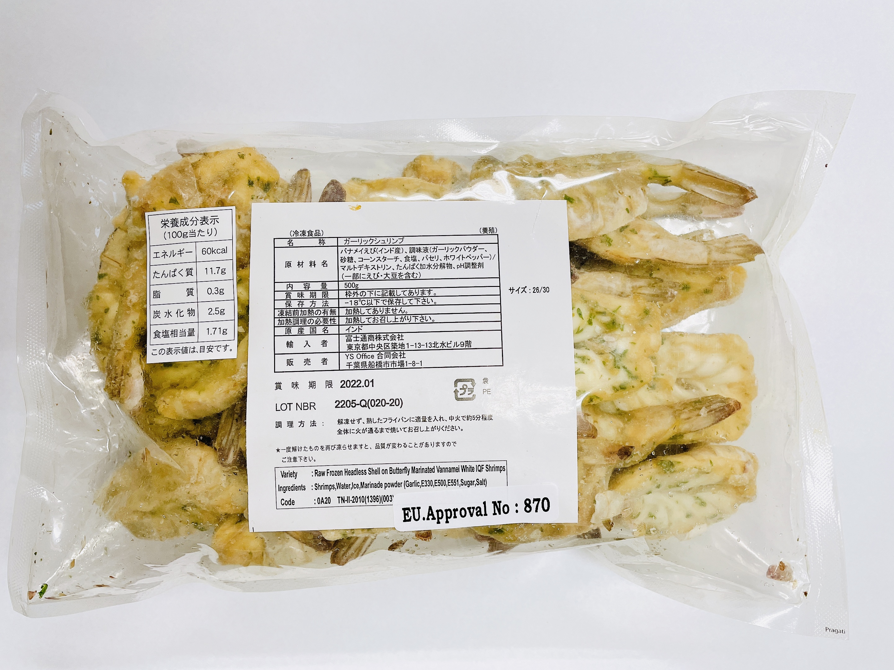 500gパックに約35尾入っており、2パック入りの1kgです。