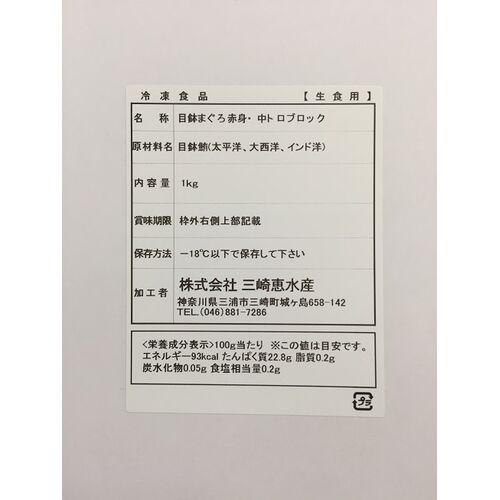 目鉢マグロブロック1kg(中トロ、赤身柵どり皮付)