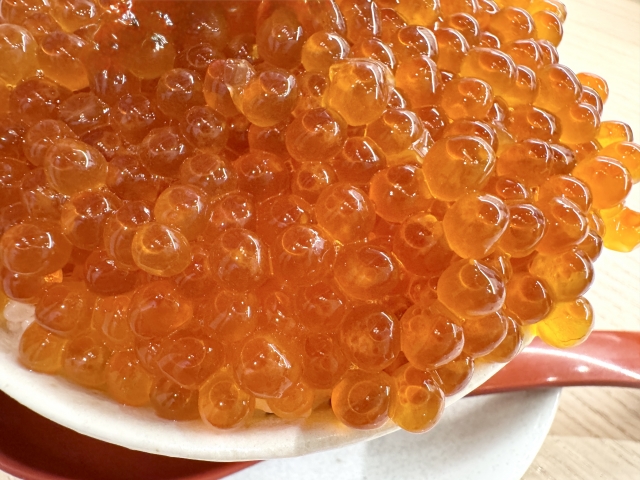 北海道産秋鮭の卵だけを厳選し、職人がひと粒ずつ丁寧にもみほぐしました。旨みを引き立てる特製の醤油たれにじっくり漬け込み、ぷちっと弾ける食感と濃厚なコクが自慢の逸品です。